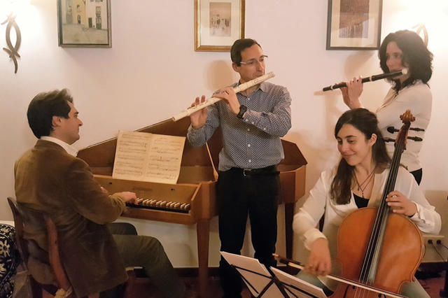 José Rui Fernandes e Sofia Cosme (flauta travessa barroca), Vânia Moreira (violoncelo) e Daniel Oliveira (cravo).