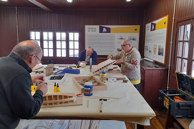 Numa visita à oficina deste núcleo, localizado no sítio de um antigo estaleiro naval, vai ser possível assistir às sessões do curso de modelismo naval, da responsabilidade de Carlos Montalvão, modelista naval com formação em História Marítima.