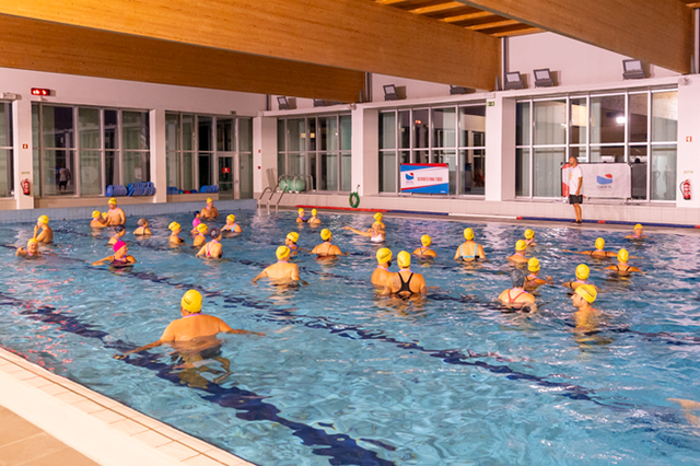 Aula aberta de hidroginástica.