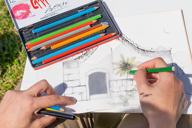 Esta oficina visa promover o gosto pelo desenho como forma de expressão individual, ao mesmo tempo que permite descobrir, através do desenho de observação, as espécies da flora e da fauna em relação com o contexto patrimonial do local.