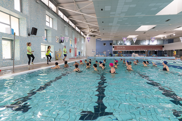 Aula de hidroginástica, inclusiva, integrada nos Jogos do Seixal 2025.