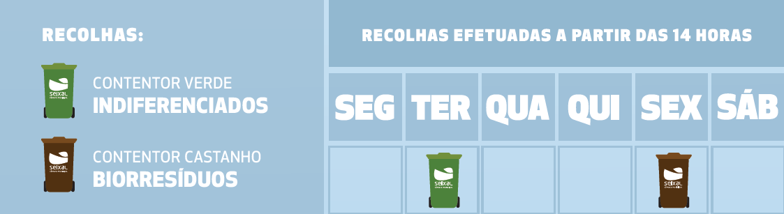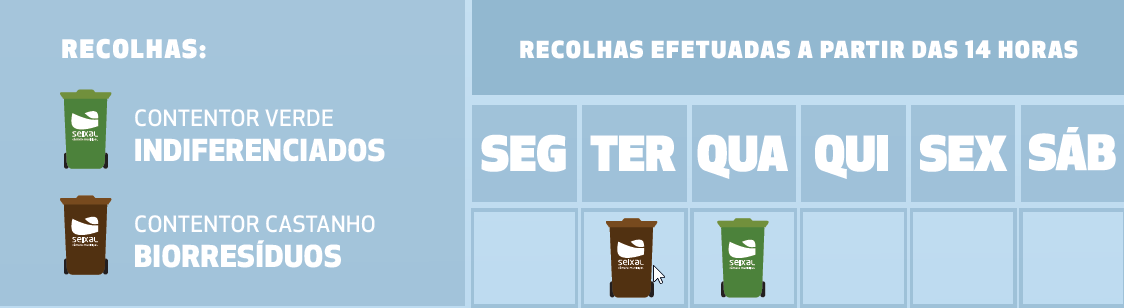 Se reside nestes locais, não se esqueça de colocar os contentores à porta nos períodos indicados.