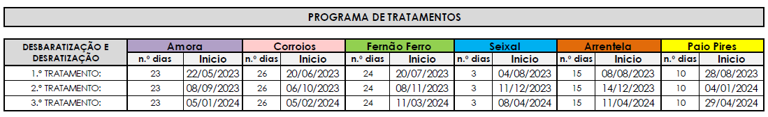 Consulte a calendarização de tratamentos preventivos no concelho.