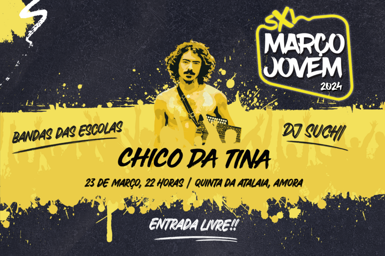 A Quinta da Atalaia, em Amora, abre as suas portas este sábado ao concerto de Chico da Tina, o ponto alto deste Março Jovem SXL, que traz ainda ao palco bandas das escolas secundárias do concelho e o DJ Suchi para encerrar este grande espetáculo. A entrada é livre.