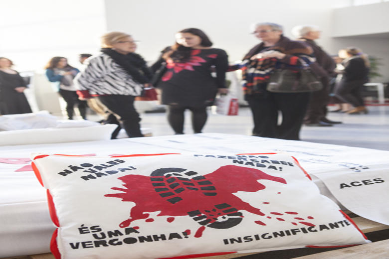 Desde o dia 10 de março, as almofadas recebidas estão expostas no átrio do serviços centrais da autarquia para defender o direito a oportunidades iguais e lembrar que a violência não atinge só mulheres ou crianças e pode estar na porta ao lado.