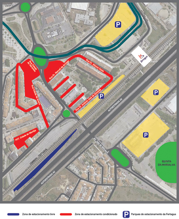 A Fertagus irá colaborar com a Câmara Municipal do Seixal na aplicação deste modelo com a realização de descontos na utilização dos parques de estacionamento em Corroios: