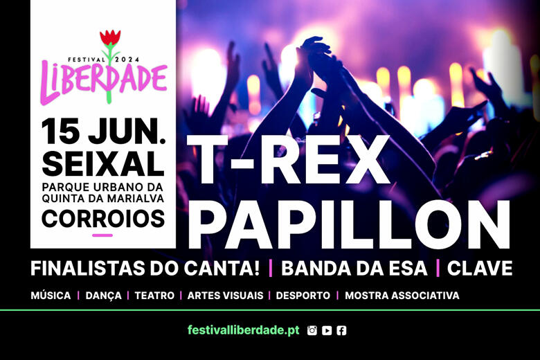 O Seixal assinala este ano o final de ano letivo com o Festival Liberdade, no Parque Urbano da Quinta da Marialva, em Corroios, no dia 15 de junho, a partir das 10 horas, e conta com os artistas T-Rex e Papillon, como cabeças de cartaz. A entrada é livre.