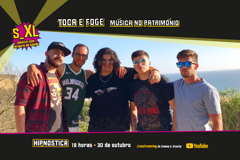 O Cinema S. Vicente, em Aldeia de Paio Pires, acolhe a partir deste sábado, dia 30 de outubro, às 19 horas, o primeiro espetáculo Toca e Foge – Música no Património, com transmissão em live streaming no Youtube do Município do Seixal, com a banda Hipnostica.