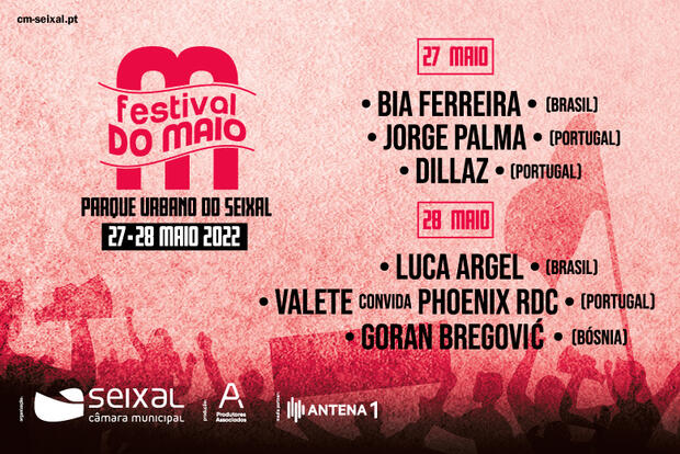 A 3.ª edição do Festival do Maio decorre nos dias 27 e 28 de maio e pelo palco do Parque Urbano do Seixal vão passar Bia Ferreira e Luca Argel, do Brasil, os portugueses Dillaz, Valete e Jorge Palma, e o bósnio Goran Bregović a encerrar estas duas noites de concertos que têm como elemento central o seu discurso de intervenção.