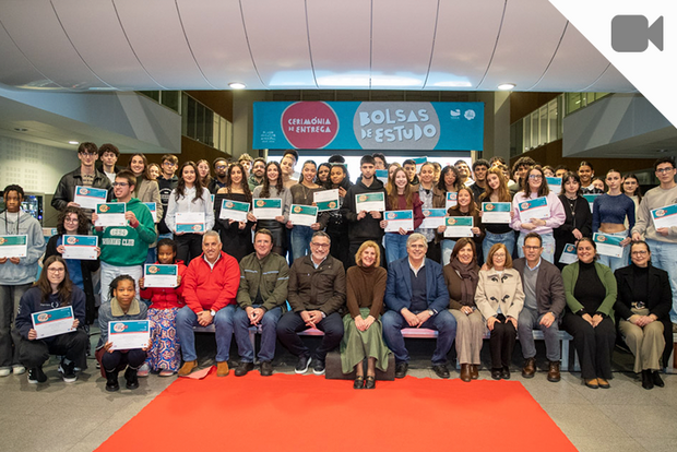 Alunos do ensino público e familiares participaram, no dia 23 de janeiro, na cerimónia de entrega de diplomas de bolsas de estudo, que decorreu no átrio dos Serviços Centrais da Câmara Municipal do Seixal.