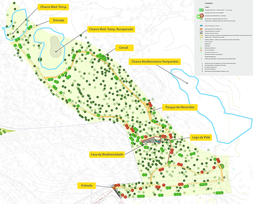 A 1.ª fase, com 7 hectares, está concluída, numa área que conta com um Centro de Interpretação Ambiental, destinado a servir de apoio aos utentes, e uma componente de educação, divulgação e observação da natureza e biodiversidade que pretende ser um marco na promoção de conceitos para o futuro, ao nível da ecologia e da proteção ambiental.